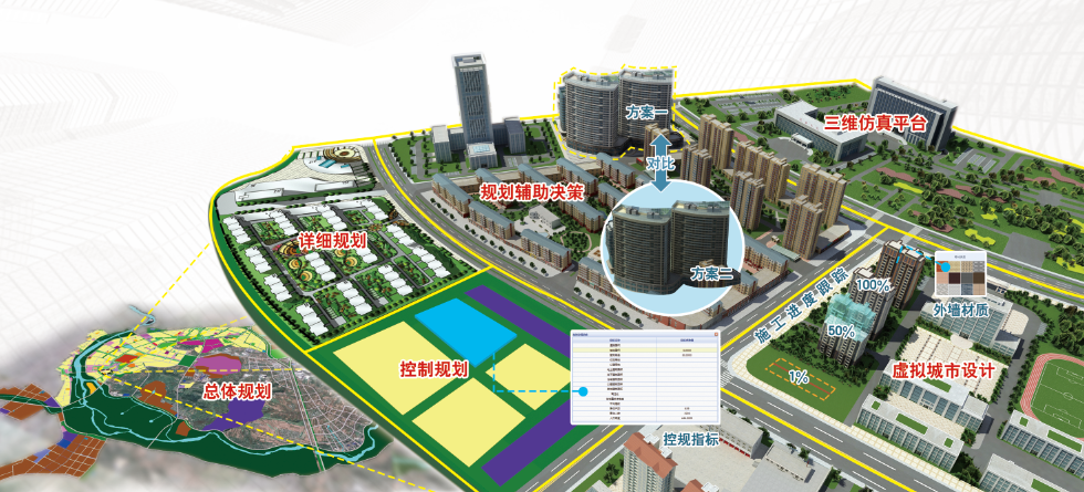 城市規(guī)劃管理系統(tǒng)利用三維地理信息平臺(tái),結(jié)合規(guī)劃管理實(shí)際情況,通過將規(guī)劃相關(guān)空間信息和文檔信息緊密結(jié)合,形成集地理信息,辦公圖文信息、規(guī)劃信息等各種信息于一體的信息化平臺(tái)。該系統(tǒng)由規(guī)劃管理、規(guī)劃展示、規(guī)劃輔助決策、規(guī)劃?rùn)n案、規(guī)劃審批、虛擬城市設(shè)計(jì)、三維仿真平臺(tái)構(gòu)成。各模塊既可以相互獨(dú)立又可以有機(jī)的集成在一起,構(gòu)成了全面的規(guī)劃管理信息化建設(shè)解決方案。