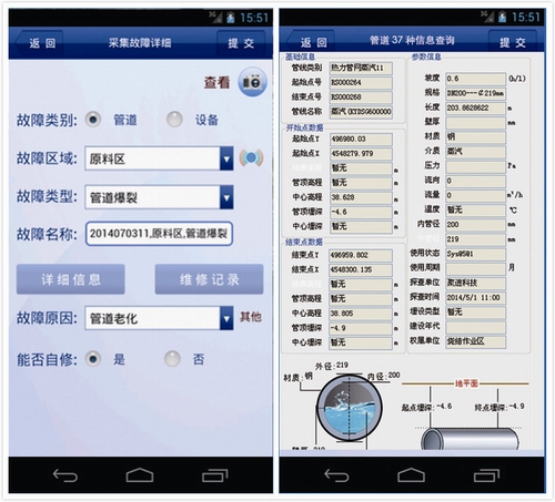 ■ 手持端PDA功能主要是對管道的日常維修進行管控,為管道的排查上報故障等工作提供方便。